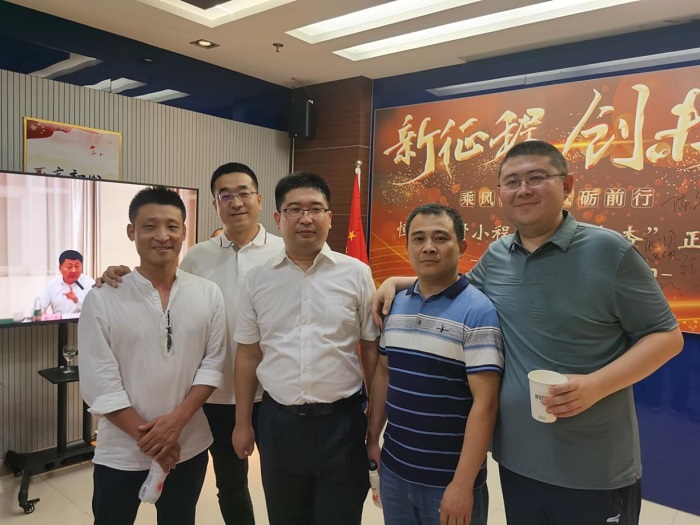 國(guó)富投資集團(tuán)黨委常委、副總經(jīng)理、恒銀公司黨支部書記馬國(guó)棟同志受邀出席啟動(dòng)儀式并向小程序主創(chuàng)人員魯炎同志頒授“特殊貢獻(xiàn)獎(jiǎng)”獎(jiǎng)牌和5000元特殊貢獻(xiàn)獎(jiǎng)金。公司董事長(zhǎng)李剛同志、總經(jīng)理王軍同志及全體班子成員在輕松愉悅的氣氛中全程參加了啟動(dòng)儀式,與總部員工合影留念并進(jìn)行現(xiàn)場(chǎng)互動(dòng)。