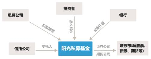 目前市場上大部分的陽光私募基金其實(shí)是信托產(chǎn)品,即通過信托公司發(fā)行的產(chǎn)品,通過信托合同規(guī)定各方的權(quán)利與義務(wù)。陽光私募基金共有四方參與:陽光私募基金公司、信托公司、證券公司和銀行,其中陽光私募基金公司負(fù)責(zé)證券市場投資;信托公司是產(chǎn)品發(fā)行的法律主體,提供產(chǎn)品運(yùn)作的平臺(tái),并承擔(dān)部分監(jiān)管職責(zé);銀行作為資金托管人,保障投資者資金安全;證券公司作為證券托管方,保障證券的安全性。另外,除了通過信托平臺(tái)發(fā)行,還有通過有限合伙企業(yè)、券商資管通道、公募基金一對一專戶發(fā)行的陽光私募基金。