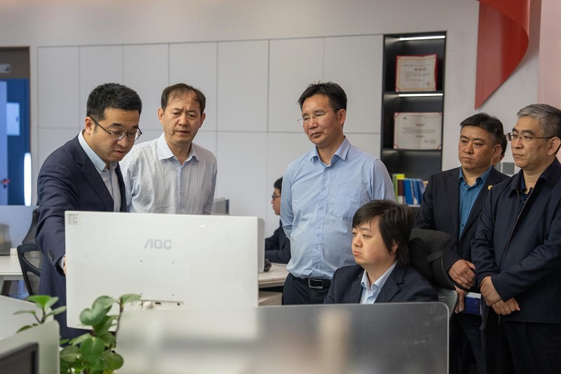 圖三:徐科華(左三)在觀看完公司宣傳片后指導(dǎo)交流